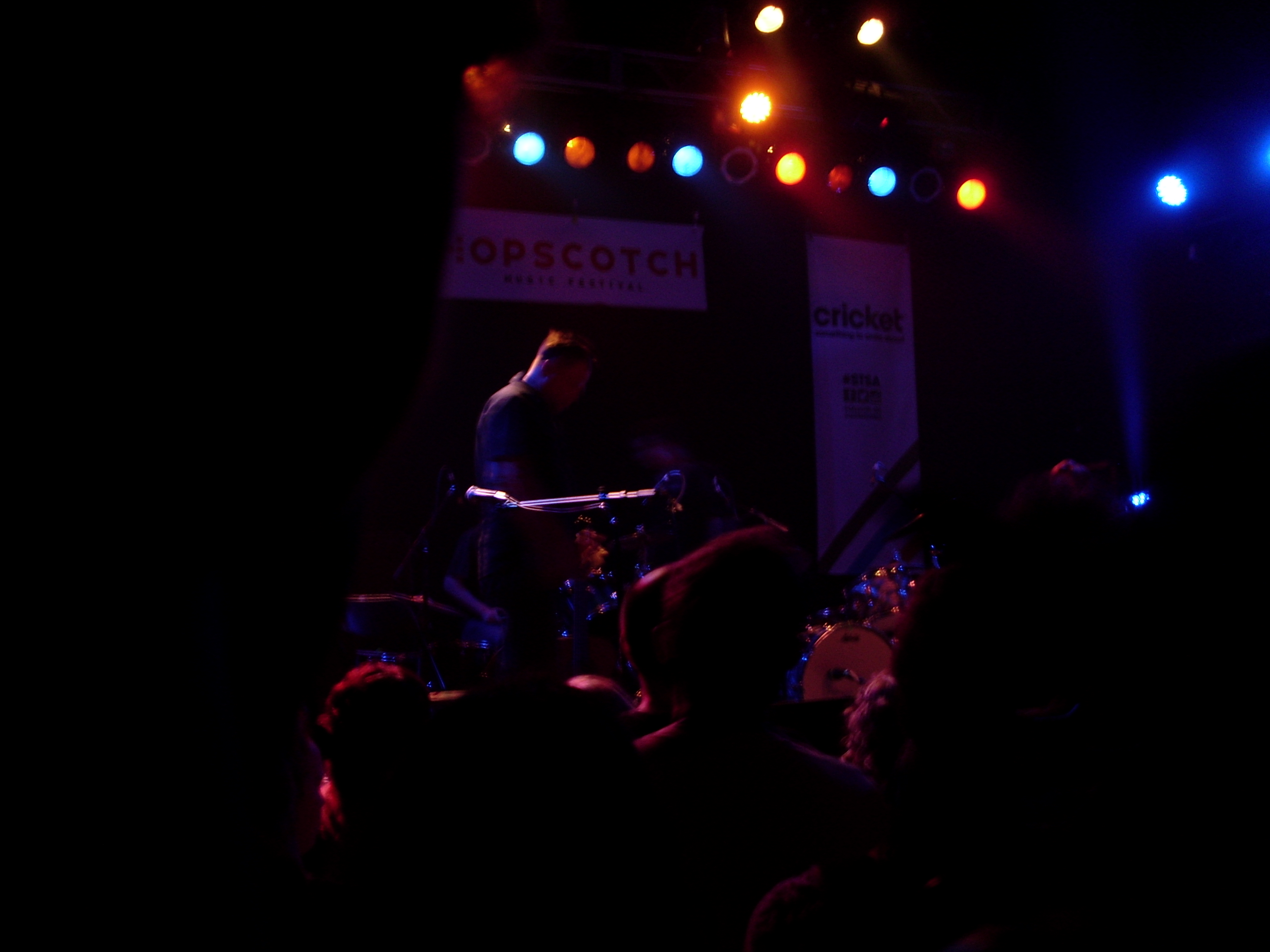After a quick meal break, I was reenergized and ready for the rest of evening. I resumed my Hopscotch-ing at Tir Na Nog with Haley Fohr, who performs under the name Circuit de Yeux. The place was pretty full and Fohr treated the audience to a (self-)lacerating performance, concluding with a long number that closed with Fohr shrieking and writhing on the ground and banging away on her overdriven acoustic guitar. I was impressed at her level of emotion and commitment. (Honestly, it scared me a little bit!)