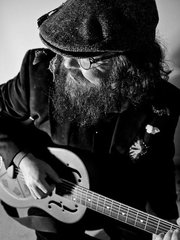 Raleigh bluesman Th' Bullfrog Willard McGee will play live on The Bull City Cosmic Hoedown, Tues May 3rd in the 7:00pm hour... Bullfrog has a great love for our local Piedmont Blues and plays many tunes from the likes of The Rev Gary Davis, Blind Boy Fuller, Sonny Terry & Brownie McGhee, John Jackson and many others... His subtle guitar playing and big gravely voice make up his trademark sound. Bullfrog is also a great illustrator and spends a lot of time drawing pencil and ink drawings of local blue-men and women
